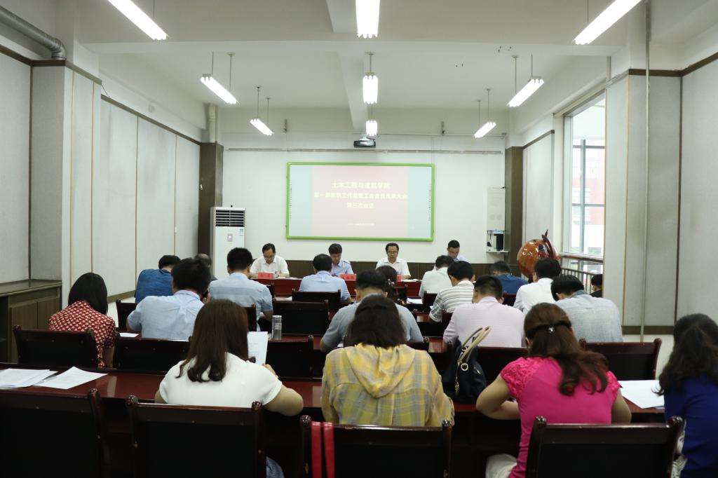 伴着庄严的国歌,会议拉开序幕。首先,王崇革作了工作报告。他从特色工作、教学工作、学科与科研平台、学位与研究生、科研与合作交流、学团工作、党建与思想政治工作等七个方面对2018年学院的工作与成绩作了全面总结。王崇革指出,学院在2019年将认真贯彻落实校第三次党代会精神,紧密结合当前国家、行业和区域发展的趋势,谋划土木工程学科的发展方向,逐步形成纵向引领、横向支托的科学研究综合体系,全面推动学院人才培养的各项工作再上新台阶。