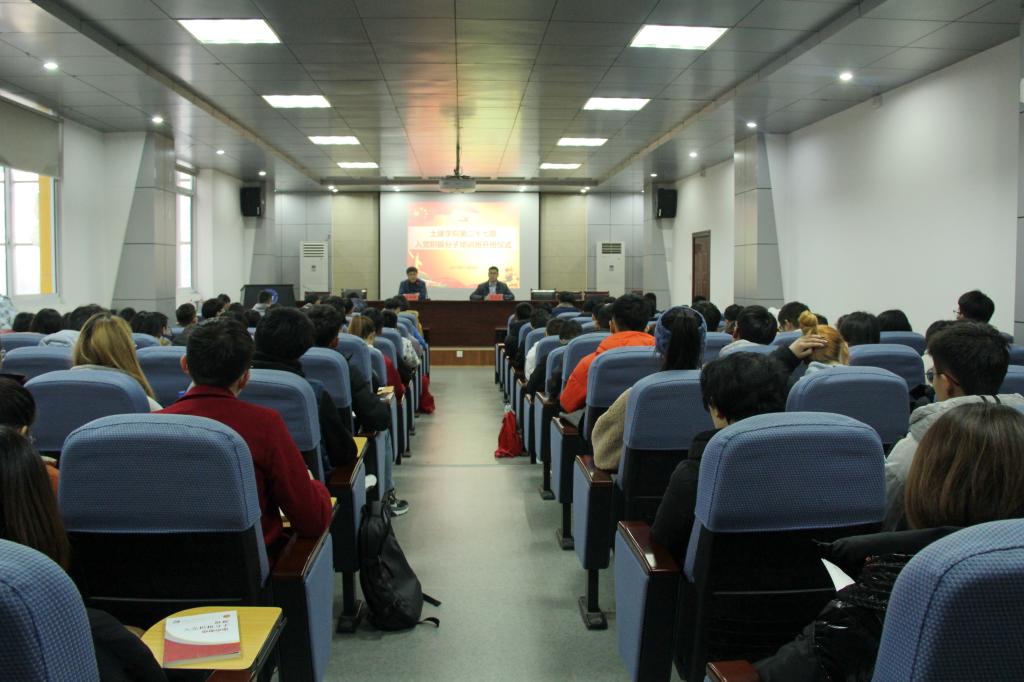 12月9日下午,beat365亚洲体育在线官网第二十七期入党积极分子培训班在J15-219报告厅正式开班,学院党委副书记(主持工作)宋西路、党委干事王贝贝及118名入党积极分子参加了开班仪式。