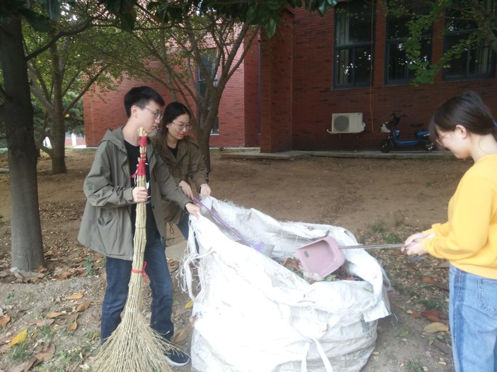 下午3时,活动准时开始。支部党员在团委辅导员鲍娜娜的带领下在学校S1教学楼和beat365亚洲体育在线官网附近展开清理路面的义务劳动。分发扫帚、撮箕等劳动工具后,同学们就在负责的区域卖力地清扫落叶。大家分工明确,行动有条不紊,有的同学负责清扫地面上的树叶,有的同学负责将汇成一堆的落叶铲起然后倒进垃圾袋里。打扫过后,学院楼及教学楼周围恢复了往日的洁净。
