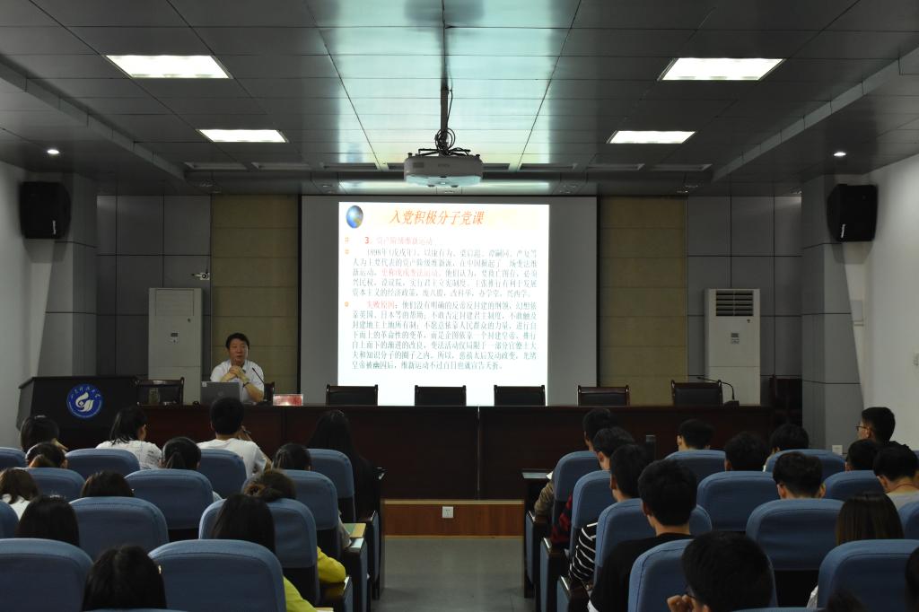 动员结束后,张东为本期入党积极分子培训班学员讲授第一节课——中国共产党的诞生与发展。张东以中国共产党的成立是历史的必然为主题,展开叙述中国共产党的诞生并带领中国人民取得民族独立的伟大奋斗历程;接着又讲述了中国共产党在改革开放前后带领全国人民不断取得社会主义建设新成就的多项重大举措;随后张东又以中国共产党在新世纪带领全国人民继续前进为主题讲述了近年来党的各项改革、措施及成就。最后,张东为大家深刻阐述了习近平新时代中国特色社会主义思想及党的十九大精神的内涵,勉励大家要不负党和国家的厚望,为实现中国梦而努力奋斗!