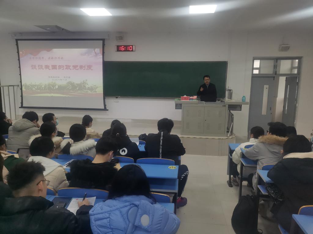 开班仪式结束后,王永君简要介绍了民革、民盟、民建、民进、农工党、中国致公党、九三学社和台盟等八大民主党派的基本情况,结合党的发展历史和中国抗战史介绍了“中国共产党领导的多党合作和政治协商制度”的形成过程,通过新冠疫情防控取得的成效,从与生俱来的稳定性、管理社会的高效性、民主作用更易发挥、监督功能更能体现等方面阐述了我国政党制度的优越性,并与其他国家的多党制、两党制和一党制等政党制度进行了对比。最后,王永君告诫学员要树立远大目标,坚定理想信念,明确努力方向,不断总结反思,成就更好的自己。