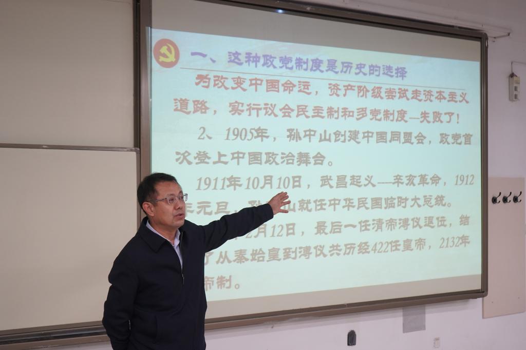 10月28日,统战部常务副部长王永君应邀在S1-103教室为beat365亚洲体育在线官网、化工学院和交通学院党员发展对象培训班授课,本次党课的主题是“谈谈我国的政党制度”。