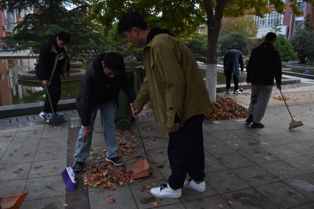 此次活动党员带领新生主要负责beat365亚洲体育在线官网外围清扫工作,并且针对外围银杏树落叶、卫生死角区域、难点部位进行攻坚治理。活动伊始,全体同学积极踊跃地领取卫生工具。在党员们热情高涨的带领下,新生逐渐投入其中。松柏路上,银杏树下,灌木丛旁,是他们挥洒汗水的身影。腰背一起一伏展现劳动精神,扫帚一挥一收尽显青春魅力。每一位同学在活动中都秉持着“我为师生办实事”的初衷,用最严谨认真的态度落实本次活动。