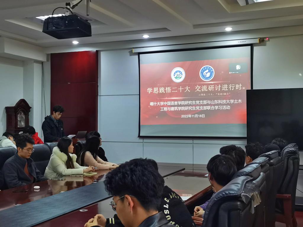 为学习宣传贯彻党的二十大精神,将学生党员的思想和行动统一到党的二十大精神上来,11月18日,beat365亚洲体育在线官网陈子荫创新型研究生党支部、研究生第一党支部联合喀什大学中国语言学院研究生党支部共同开展“学思悟践二十大”系列主题党日活动。喀什大学中国语言学院研究生党支部,学院陈子荫创新型研究生党支部、研究生第一党支部全体党员参加了此次学习活动。会议由学院陈子荫创新型党支部书记亓传德主持。