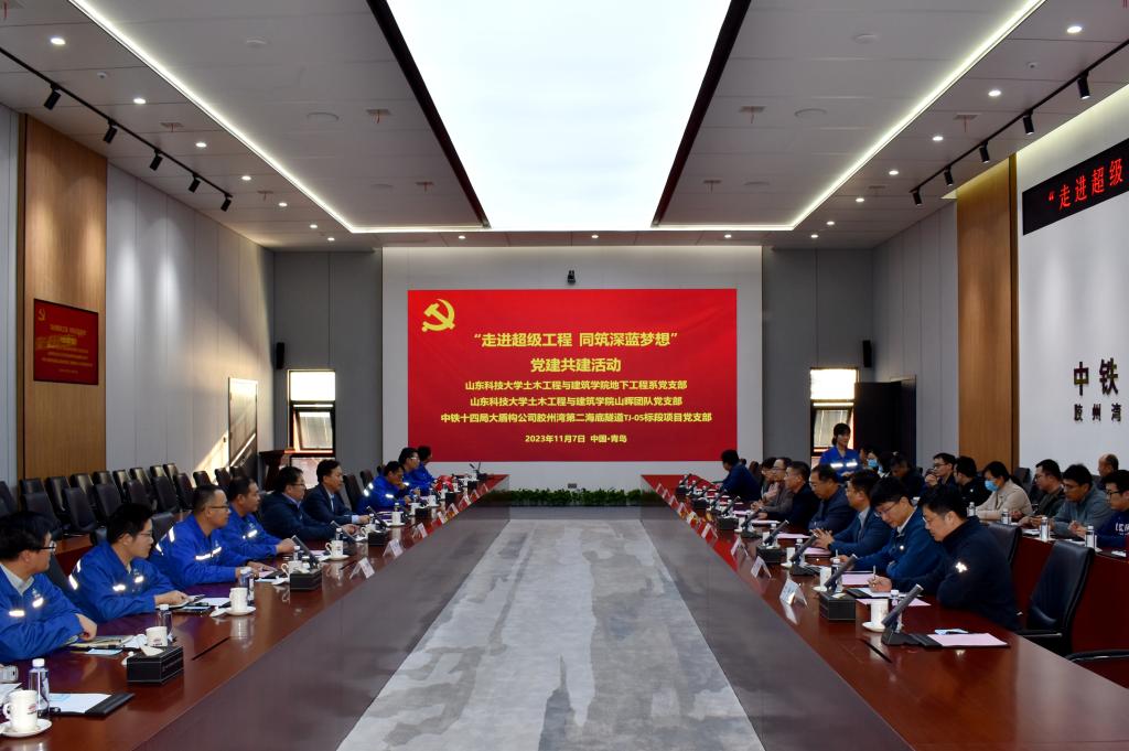 11月7日,beat365亚洲体育在线官网党委理论学习中心组联合地下工程系党支部与山晖团队党支部一行27人赴胶州湾第二隧道工程现场参观学习。中铁十四局集团有限公司工程管理部部长孙亮、大盾构工程有限公司副总经理路开道、盾构管理中心主任吴玉礼、胶州湾第二海底隧道项目部党支部书记季璐等企业负责人陪同参观并出席座谈交流会。