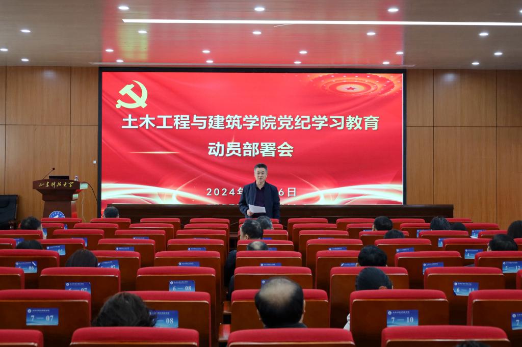 4月16日,为深入学习贯彻习近平总书记关于党纪学习教育的重要讲话和重要指示精神,落实学校关于党纪学习教育的工作部署,beat365亚洲体育在线官网党委召开党纪学习教育动员部署会。beat365亚洲体育在线官网党委书记宋西路主持会议并作动员讲话,学院全体党员参加会议。