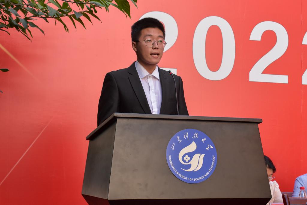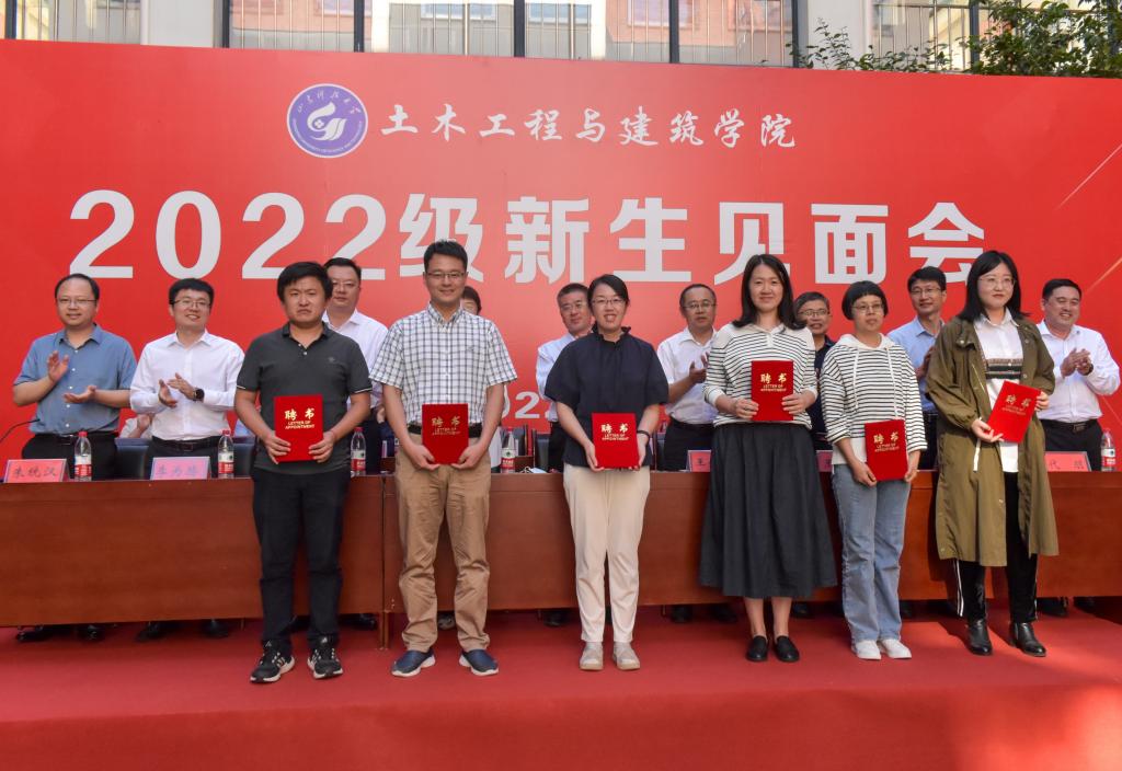 在校生代表、院学生会执行主席徐航送给新生四个词:爱国、责任、坚持、高度,希望新生能在这几个词的指引下学业有成。2022级本科新生杨隆焯、2022级研究生新生李椿萌作为新生代表:表达了对新阶段的期待与决心,表示将与同伴共同扬起理想之帆,踏上学习新征程,在土建热土上挥洒热汗。