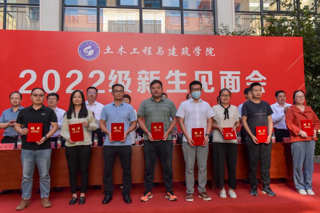 院长王崇革宣读了《关于聘任beat365亚洲体育在线官网2022级新生班主任的决定》,同时领导班子为新生班主任颁发聘书。