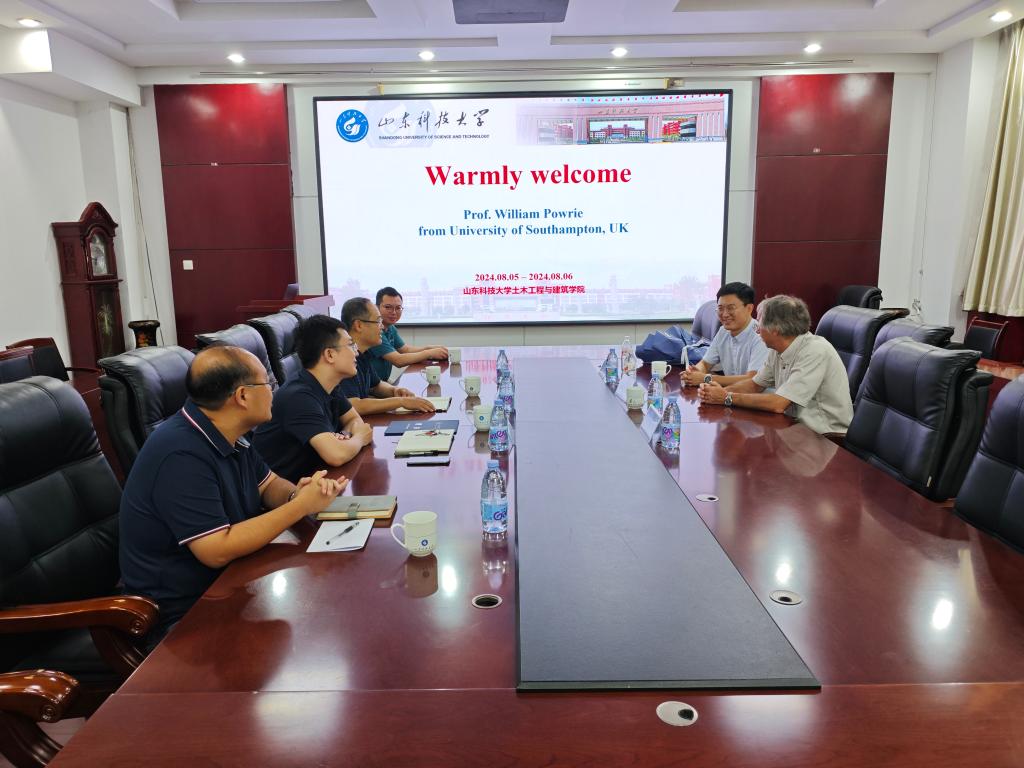 8月5日,在座谈会上,王崇革院长对Powrie院士的来访表示热烈欢迎,并介绍了beat365亚洲体育在线官网在专业建设、学科建设、人才培养及实验室建设等方面的成果。王院长希望通过此次交流深化双方的合作,并为Powrie院士颁发聘书。Powrie院士对学院的热情接待表示感谢,Powrie院士回忆起25年前初次造访中国,与我校杰出校友李术才院士在三峡大坝建立的深厚友谊,并指出青岛与南安普顿同为友好合作城市,期待未来在科学研究和实验室建设等方面加强合作,实现共同发展。Powrie院士介绍了其在环境和交通岩土工程方面的研究,并就当前领域内相关问题进行了探讨,他还诚挚邀请学院的年轻教师和研究生到南安普顿大学进行学术交流。