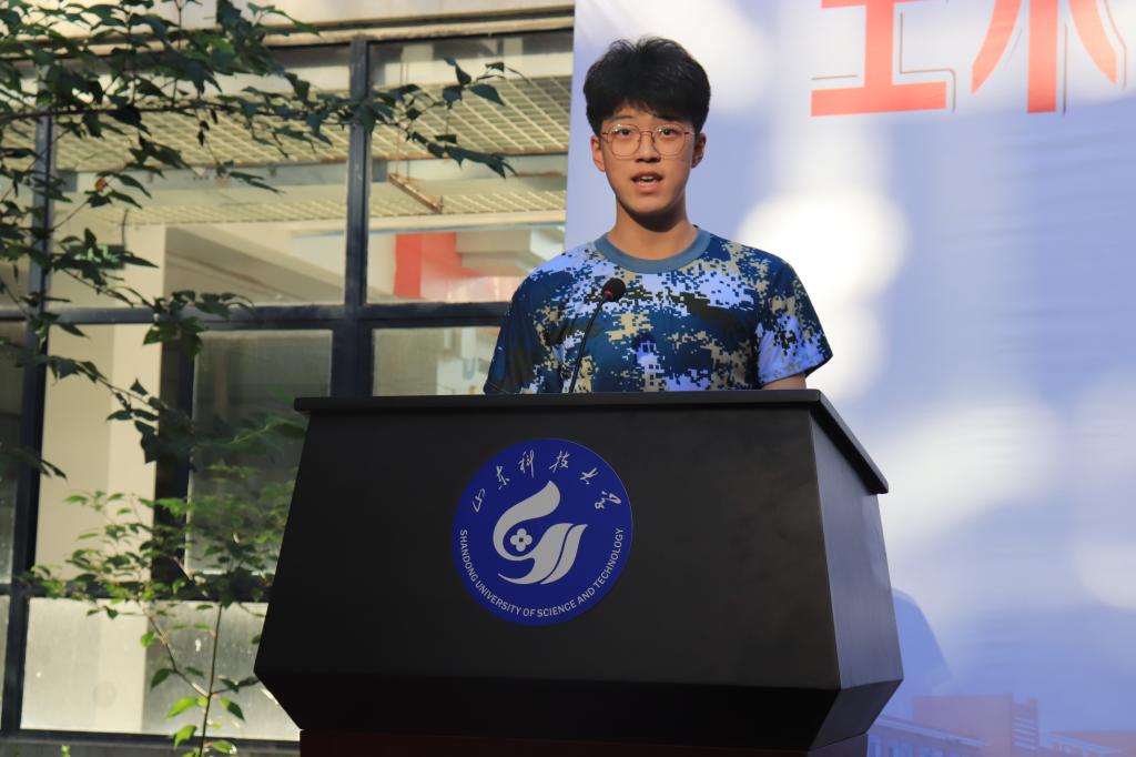 在校本科生代表、土木工程18-7班王江浩结合自己两年的大学生活和成长经历,向新生们提出了“爱国、责任、坚持、高度”四点建议。本科新生代表公琦超表达了对大学生活的美好憧憬和刻苦钻研学业的决心,希望同学们用青春诠释誓言、用努力铸造未来。