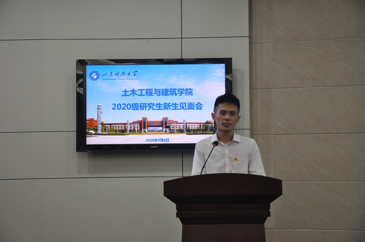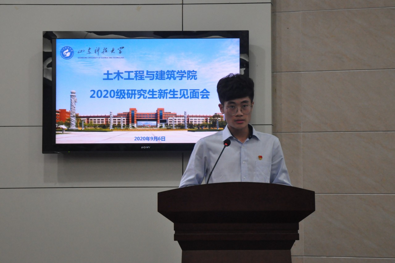 在校研究生代表韩一鸣结合自身的研究生生活,鼓励各位新生积极追逐科研目标,大胆探索,多向优秀的人学习,用青春谱写人生新篇章。同时,他还分享了beat365亚洲体育在线官网优秀校友对新生的叮嘱希望。研究生新生代表王继伟向大家讲述了自己在山科四年的学习生活,希望同学们尽快完成研究生的身份转换,既要做一名学习者,又要做一名创新者,脚踏实地走好每一步。最后,研究生新生辅导员沈娇针对疫情防控工作以及近期相关事项做了具体安排。
