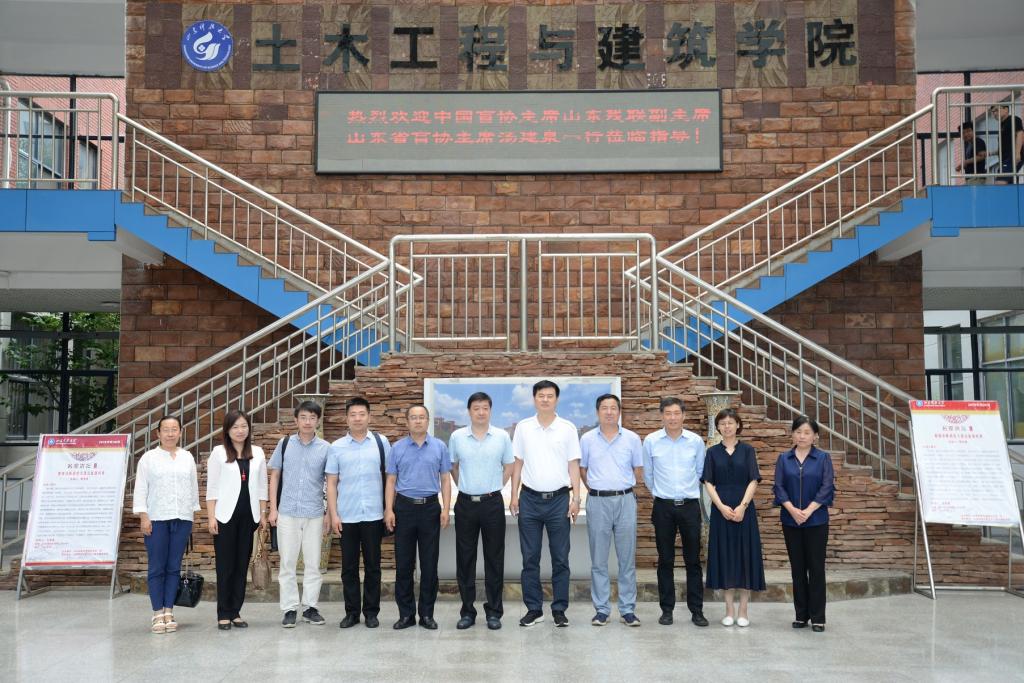 7月8日上午,中国盲协副主席、山东省残联副主席汤建泉,在山东旭天康体科技有限公司总经理王克旭的陪同下,莅临beat365亚洲体育在线官网参加无障碍建设座谈会。beat365亚洲体育在线官网院长王崇革,建筑系主任许剑峰和建筑系、城乡规划系的部分教师参加了座谈会。会议由王崇革主持。