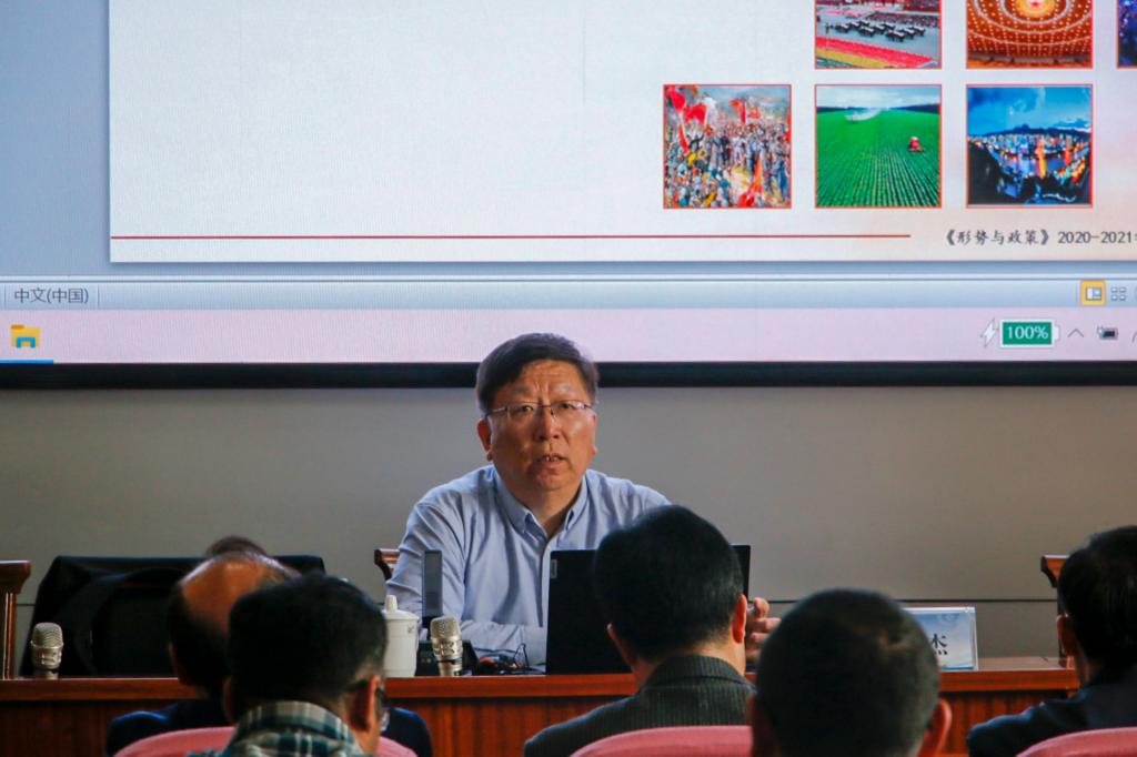 张英杰以习近平总书记在全国脱贫攻坚总结表彰大会上的讲话为切入点,围绕“明科学之理——马克思主义为什么行”“明规律之理——中国共产党为什么能”“明正道之理——中国特色社会主义为什么好”三个方面进行了深刻阐述。通过讲述历史标志性事件,对中西方道路进行系统对比,梳理了百年党史的基本脉络和鲜明特质,带领学院师生党员重温了中国近代史和党的百年光辉历程。