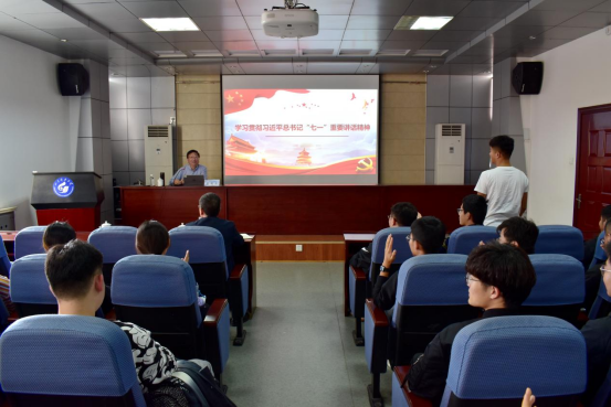 百年征程波澜壮阔,百年初心历久弥坚。张英杰副校长通过讲述国际国内形势、党史故事或标志性事件,引出习近平总书记“七一”重要讲话是激励全党全国各族人民向第二个百年奋斗目标进军的政治宣言和行动纲领,具有重大的政治意义、理论意义、实践意义。张英杰旁征博引、引经据典,指出深入学习贯彻习近平总书记“七一”重要讲话最重要的是联系党的百年奋斗历程,要全面深入领会讲话的丰富内涵、精神实质和思想精髓,深入领会讲话在一系列重大问题上的新论断、新概括,增强贯彻落实的自觉性和针对性,进一步把党的历史学习好、总结好,把党的宝贵经验传承好、发扬好,铭记奋斗历史,担当历史使命,从党的奋斗历史中汲取继续前进的智慧和力量。
