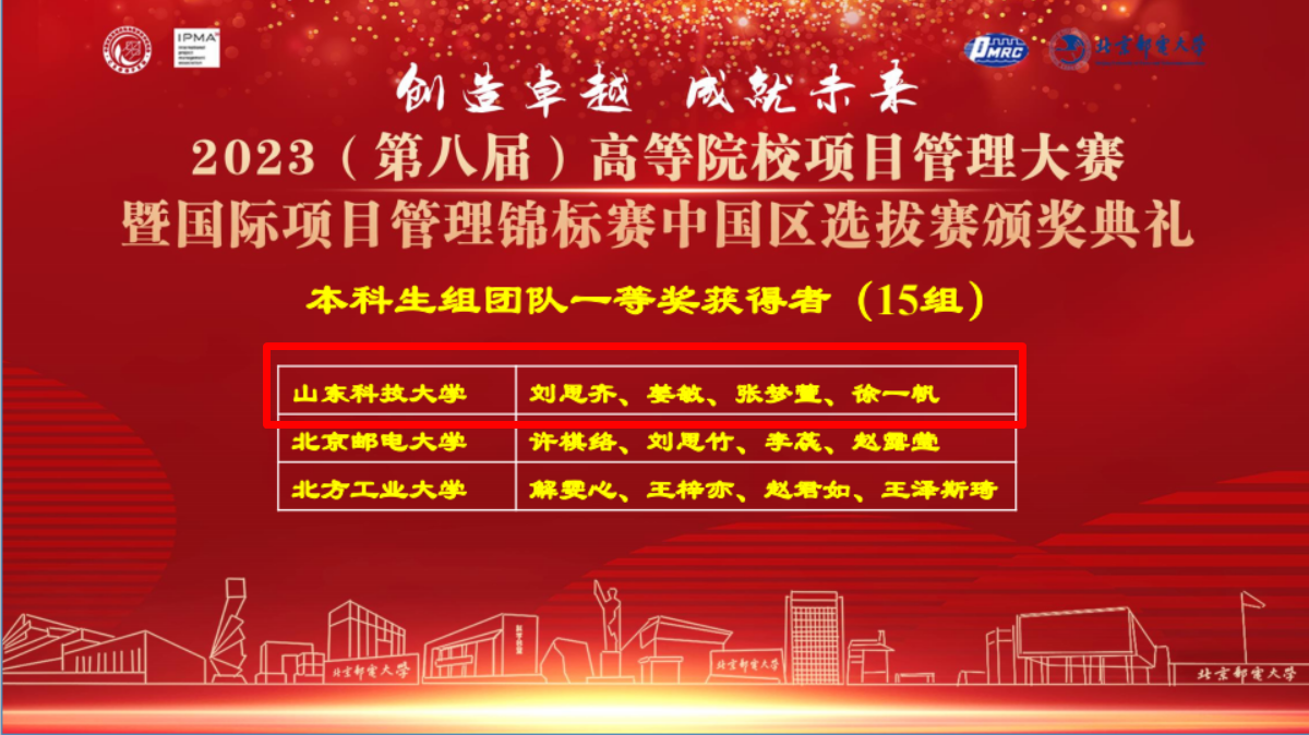 近日,由中国优选法统筹法与经济数学研究会、国际项目管理协会(IPMA)主办,北京邮电大学承办的2023(第八届)高等院校项目管理大赛暨国际项目管理锦标赛中国区选拔赛在北京邮电大学成功举办,参赛院校包括清华大学、北京大学、beat365亚洲体育在线官网等92所高校,206支队伍、500余名师生。