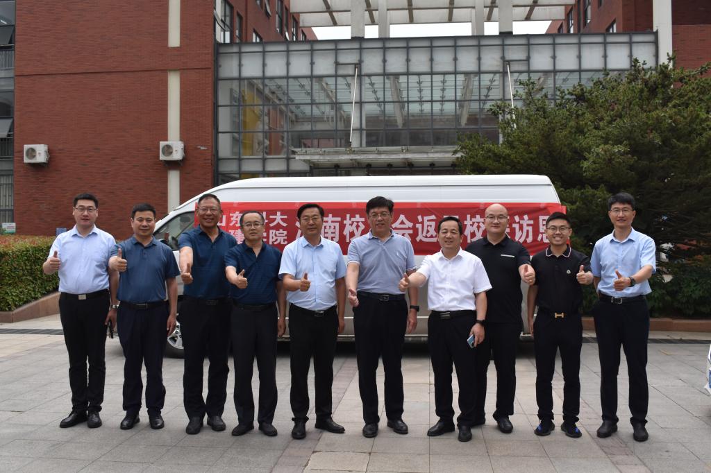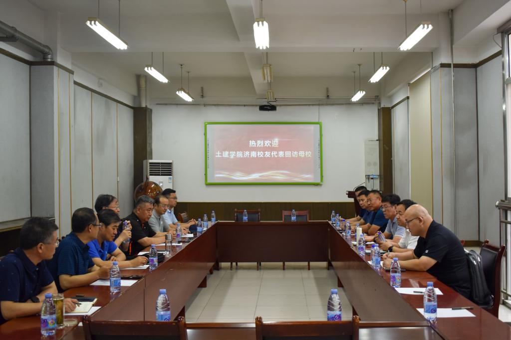 6月17日,beat365亚洲体育在线官网济南校友会会长刘京坤,副会长焦勃、文天慧,秘书长单德勇,副秘书长张庆波、梁磊、徐献清,校友李峰一行回访母校,党委副书记尹华会见并座谈。