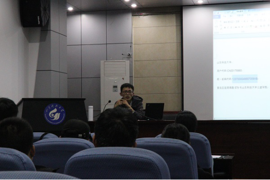 王凯从专利的概念辨析切入,详细区分了三类专利的异同之处,强调了实用新型专利的保护范围,其仅保护有一定形状或结构的新产品,审批时更注重专利的实用性,即日常提起的“小发明”,而后引申到专利的特点,着重分析了如何理解专利审批单位反馈的意见审查通知书,以及专利的期限性和缴费标准。随后,王凯分别对搜集参考类专利的实用网站、专利申请材料的撰写流程、本校的专利投递流程以及专利申请的详细审批过程进行了讲解,并结合自身已有的巷道检测技术专利,总结了专利申请材料的注意事项。最后,王凯强调要结合日常的实习、实验经历,依照专业思维,结合工程实际,做出扎实、具有专业特色的创新和研究。