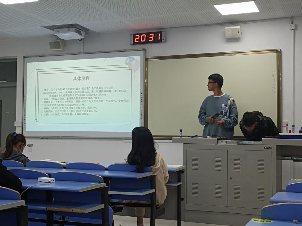 会议伊始,科创部部长向在座的班级负责人详细介绍了此次大学生职业生涯规划大赛。本次比赛时间为10月18日至28日,参赛对象为学院全日制在校本科生、研究生。比赛要求参赛选手制作书面作品和个人VCR作品,并配以主题陈述和情景模拟的现场表现形式,最终完成现场答辩。评分以职业规划设计书面作品、参赛作品设计思路、VCR展示效果3个方面为标准,评选出一二三等奖。最终,学院将推选出2-4位优秀参赛者参加学校职业生涯规划大赛初赛。
