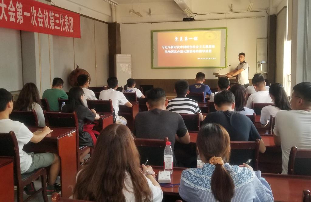 9月8日下午,beat365亚洲体育在线官网团委书记朱统汉、研究生一支部党支部书记韩一鸣和研究生二支部党支部书记宋高锐在J15-201面向2020级全体研究生党员进行了党员教育第一课的学习。