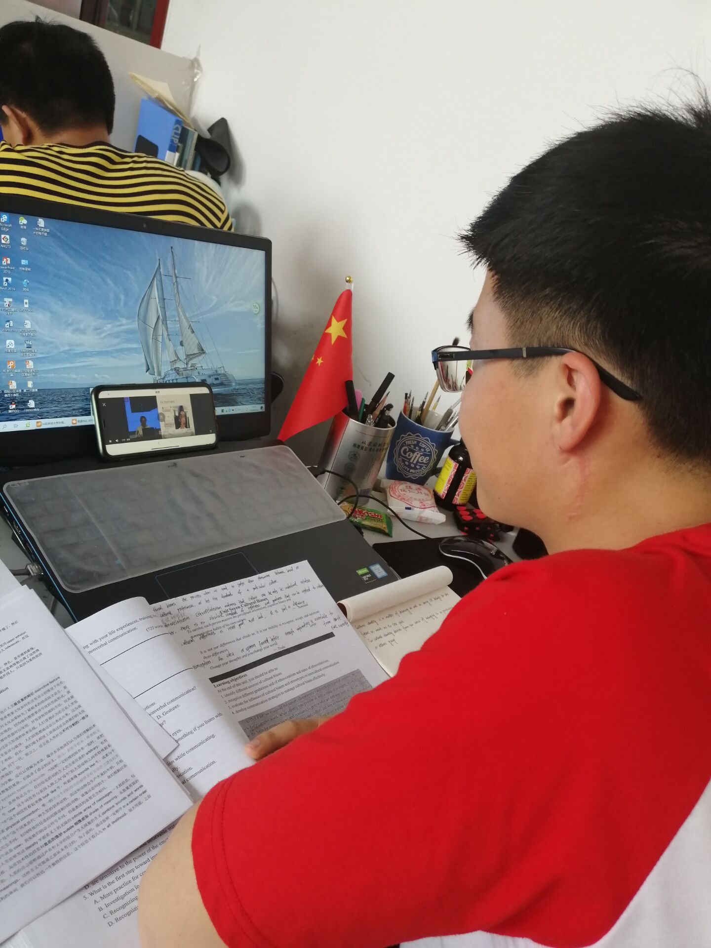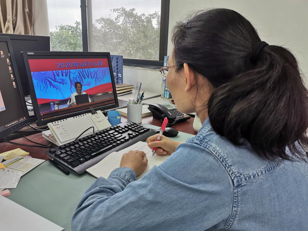 6月16日,beat365亚洲体育在线官网组织部分返校学生于J7-215教室收看校党委书记罗公利以“在战‘疫’中我们一起成长”为题的精彩思政课。学院全体学工干部、剩余返校学生、未返校学生均通过网络平台共上思政大课。
