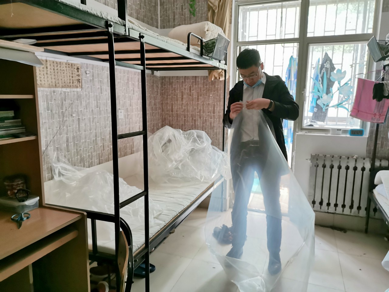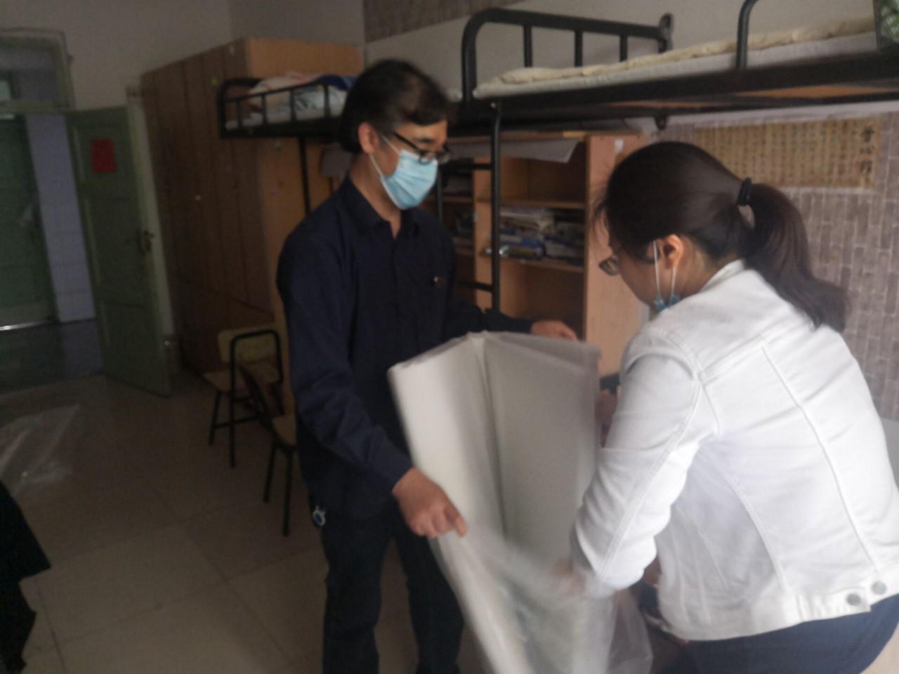 beat365亚洲体育在线官网团委对返校学生进行全面摸排,建立返校学生信息台账,一人一策进行精细化安排。考虑到宿舍较分散不利于学生安全和学校管理的情况,学院将本科生宿舍进行整合,男生统一安排在GB2一楼。近一周,学院全体辅导员集思广益,拟定宿舍准备方案,随后马不停蹄,对征用的9个整合宿舍进行整理、打扫、消毒。辅导员们将整合宿舍原成员的被褥、衣服进行打包收纳,书架物品进行归置并封存,衣柜使用封条封住,开窗通风,清理垃圾,既最大限度的保障宿舍原成员物品的安全,又全力为新入住的同学提供干净整洁的居住环境。学院在每个宿舍都放置了《致全体返校学生的一封信》《学生宿舍卫生消毒通风测温记录表》《返校学生轨迹记录表》等材料,每个宿舍均安排舍长统筹负责返校后的体温测量、消毒通风、晚点名等各项事务。