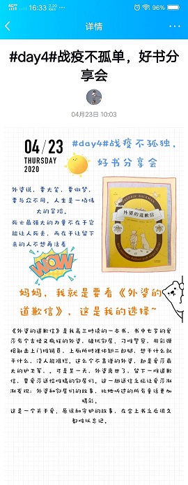 4月23日,值此第25个世界读书日到来之际,beat365亚洲体育在线官网依托线上平台,举办以“共战‘疫’不孤‘读’,好书分享会”为主题的世界读书日特别活动,鼓励土建学子好好读书、累积学识、颐养脾性。