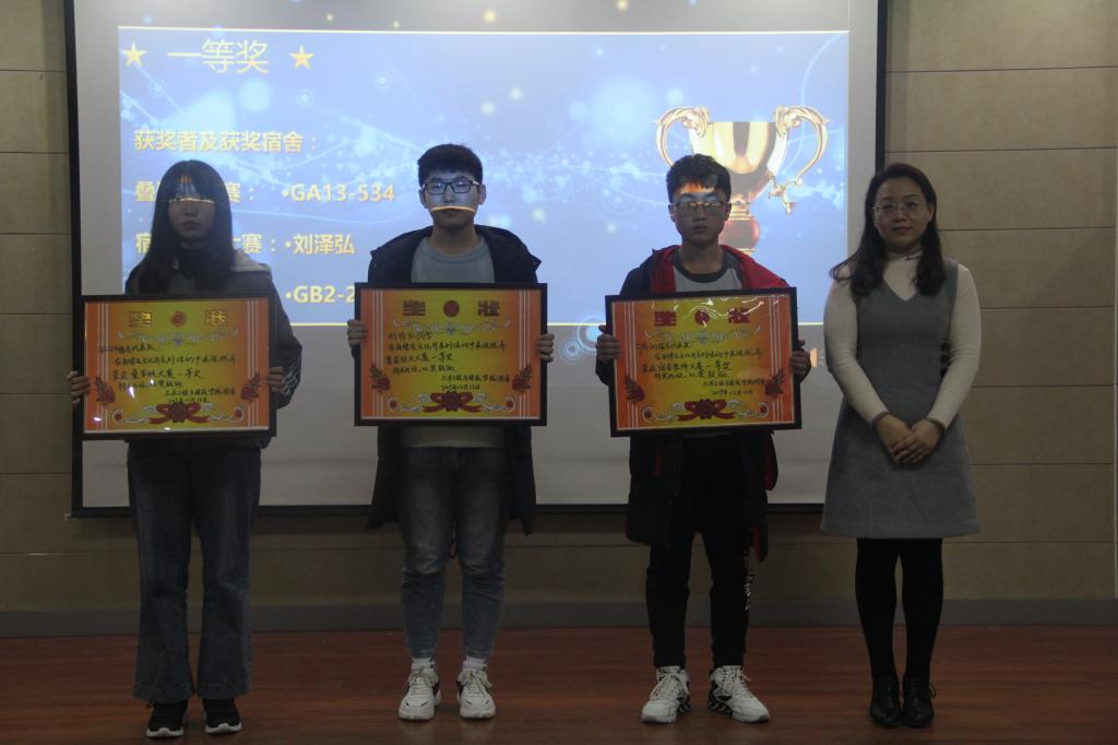 本次活动以beat365亚洲体育在线官网自律会日常工作以及宿舍文化月活动剪影视频为开端让在场观众们感受到自律会同学的认真负责、坚守岗位的工作态度。然后,自律会主席朱家璇同学对第十五届“不忘初心、寓你同行”做活动总结,分享成功举办活动的经验以及管理部门的秘诀。激动人心的颁奖仪式随之到来,叠军被大赛中GB2-136、GB-115、GB2-138、GA13-409荣获三等奖,GB2-202、GB2-214荣获二等奖,GA13-534荣获一等奖;征文大赛中宋佳妮、李树宝、徐文杰荣获三等奖,丁晓倩、丁昊荣获二等奖,刘泽弘同学荣获一等奖;宿舍装饰大赛中GA13-605、GB2-132、GB2-203宿舍荣获三等奖,GA13-521、GA13-606宿舍荣获二等奖,GB2-202宿舍荣获一等奖。