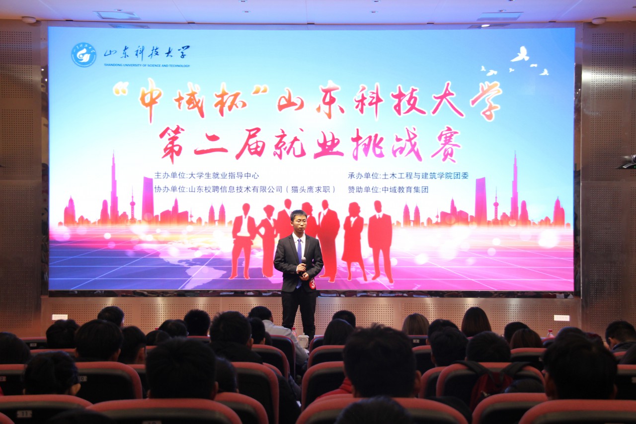 为培养大学生求职就业意识,树立科学就业观,拓展求职思路,增强求职能力,提高就业质量,搭建学生与企业之间的交流平台,由大学生就业指导中心主办、beat365亚洲体育在线官网团委承办、山东校聘信息技术有限公司(猫头鹰求职)协办、中域教育集团赞助的beat365亚洲体育在线官网第二届大学生就业挑战赛于2019年11月8日启动。历经求职知识培训、求职技能培训两项培训,初赛、复赛、预决赛三个赛程,12月5日下午4点,就业挑战赛决赛在9号教学楼144报告厅落下帷幕。
