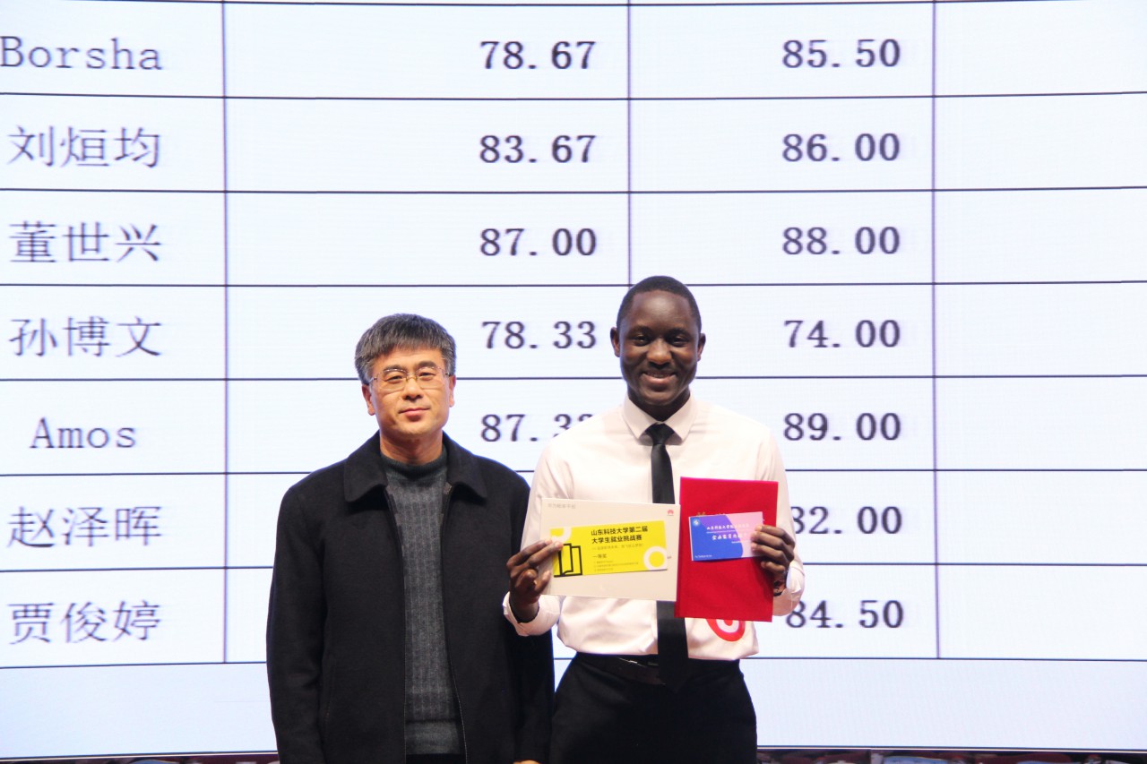 最终荣获本次比赛一等奖的是来自国际交流学院的Amos,荣获二等奖的是赵泽晖、贾俊婷、董世兴、刘烜均、Borsha,荣获三等奖的是孟祥发、张志远、赵鑫源、王文静等。另外,根据比赛的网络投票环节,beat365亚洲体育在线官网的苏彪、张志成获得“人气奖”,外语学院的白照众获得“最具人气奖”。颁奖环节后,优创(青岛)数据技术有限公司向刘煊均颁发了“面试直通卡”, 青岛新东方前途出国咨询有限公司更是为赵鑫源发出了宝贵的“offer”。