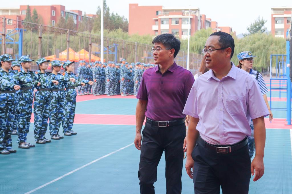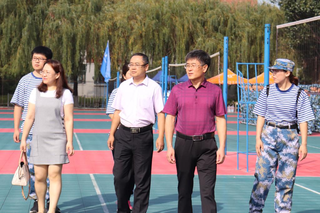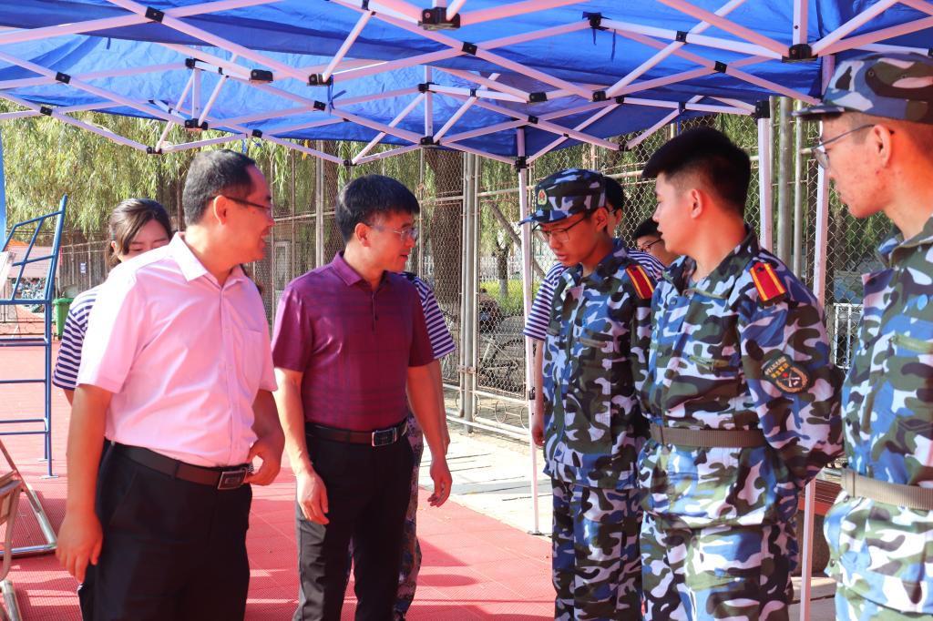 上午,beat365亚洲体育在线官网党委副书记(主持工作)宋西路、院长王崇革在团委书记于娜及19级辅导员的陪同下前往训练场地,对新生军训的情况进行了详细了解和指导,对在场工作人员进行了慰问,对因伤无法参训的同学们表示关心,对军训场地布置和宣传工作进行了视察。学院领导还进入训练场地,驻足观看学生们的训练情况,与各位教官进行了交流,对他们的耐心指导和辛苦付出表示了感谢。