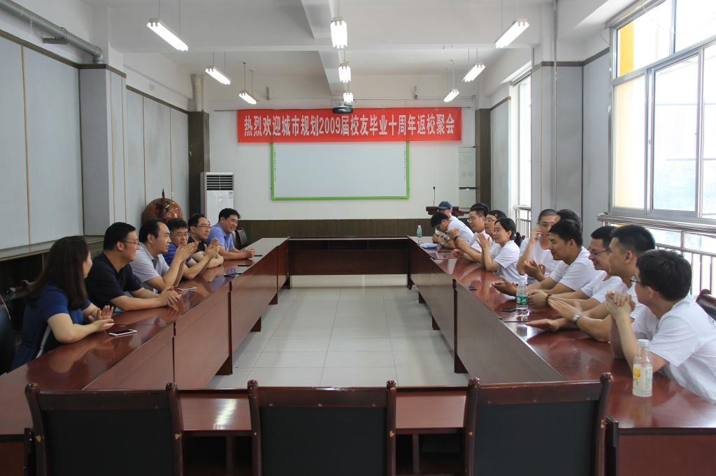 8月17日下午,beat365亚洲体育在线官网城市规划2009届毕业生回访母校,举办毕业十周年返校座谈会。beat365亚洲体育在线官网党委副书记(主持工作)宋西路,beat365亚洲体育在线官网党委副书记、副院长郝亮,副院长张宪堂,团委书记于娜以及规划系主任代朋,规划系教师赵景伟参加了本次座谈会。