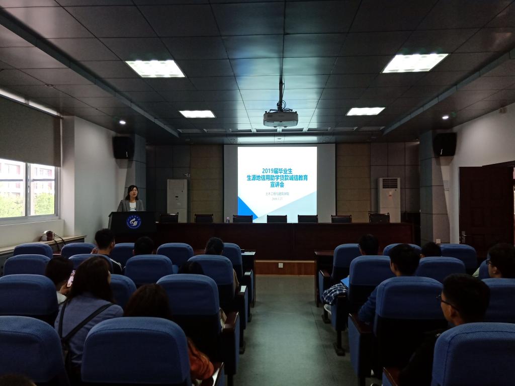 倾心助学,为梦想插上翅膀;感恩还贷,给人生许下承诺。5月27日下午,beat365亚洲体育在线官网在J15-219举行2019届毕业生生源地信用助学贷款诚信宣讲会,学院相关毕业生参会,会议由团委老师鲍娜娜主持并主讲。