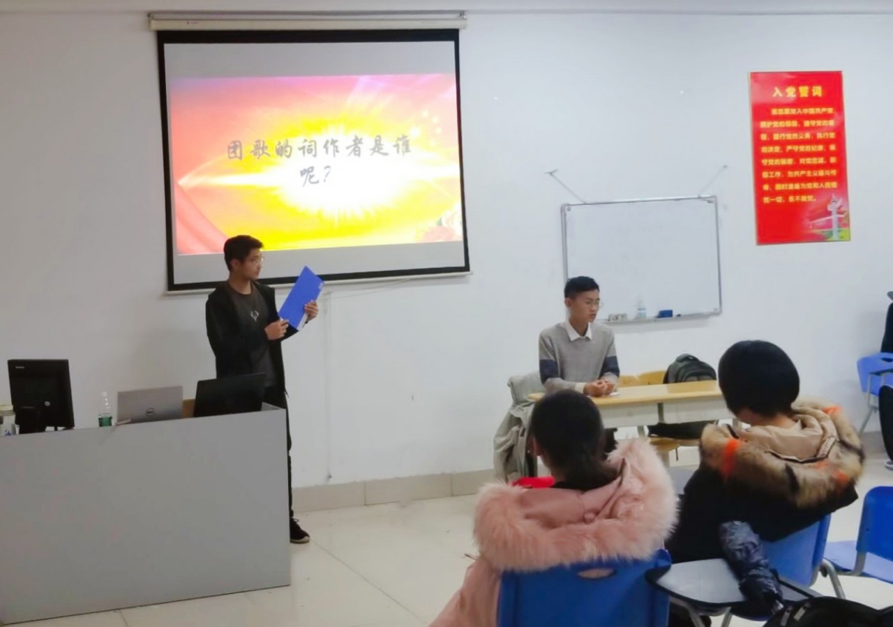 为深入学习贯彻习近平新时代中国特色社会主义思想和党的十九大精神,认真落实团十八大关于全面从严治团的部署要求,提高共青团组织建设科学化水平,进一步强化团员意识,根据团省委和校团委工作安排,近日,beat365亚洲体育在线官网团委在全院范围内组织各团支部集中开展了以团旗、团徽、团歌等共青团标志规范使用为主要内容的主题团日活动,对《中国共产主义青年团团旗、团徽、团歌制作使用管理规定》(中青发〔2018〕12号)进行深入学习。