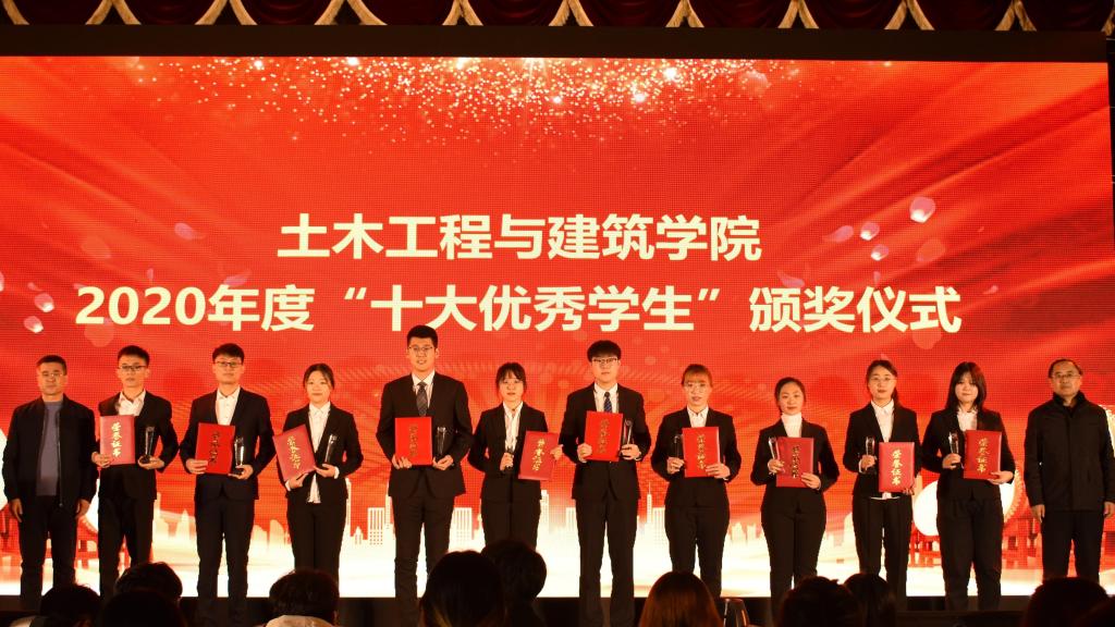 在“十大优秀学生”颁奖环节中,一段段VCR精彩纷呈,展示了365官网十大优秀学生的傲人风采,展现了土建学子担当时代责任、勇于砥砺奋斗的精神风貌。他们是个人综合能力的突出榜样,是奋斗青春的典型楷模,是土建学子的优秀代表,他们的优秀事迹激励广大同学奋勇争先、一路向前。2020年度校十大优秀学生、院十大优秀学生代表王家轩发言,他表达了对学院领导和老师悉心培养的感激和对同学们团结互助的肯定,以自身成长激励在座同学奋发图强,奋勇拼搏,在磨砺与挫折中成长,在坚持与奋斗中成才。