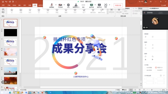 3月4日晚,beat365亚洲体育在线官网举行“挑战杯”红色专项活动线上成果展示。优秀实践队伍代表韩一鸣、吕希萌、高宁和刘士奇受邀进行成果展示。韩一鸣以“返回家乡看变化、深入乡村看振兴”为主题,从乡村振兴的大背景到潍坊市寿光市南韩村的基本信息,并借2018年该村因台风受灾,灾后重建以及省地市对该地的支援援助,实地调研了家乡的发展变化。之后,吕希萌和高宁分别代表燃梦公益团队和星火燎原实践队分享了红色社会实践成果,他们以云组队的形式参与云调研,各队员在当地各个红色展览馆等景点进行调研,依托视频来介绍当地的红色任务和红色事迹,并借网络电话会议等形式汇总调研结果,发表调研感悟。最后,刘士奇分享了参赛成果和参赛经验。