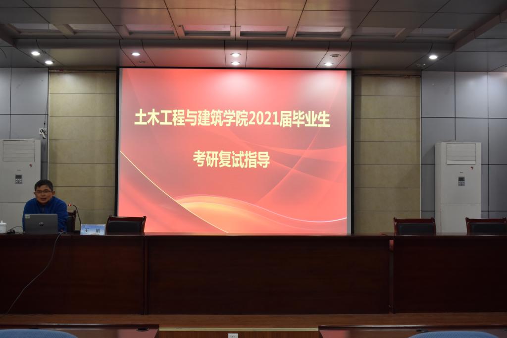 为进一步帮助考研学子做好研究生复试、调剂准备,beat365亚洲体育在线官网于3月24日下午在土建楼219开展了2021届毕业生考研复试指导。本次指导由副院长王刚主持并讲解,同时邀请了2020届顺利考取名校的毕业生进行线上交流经验答疑。