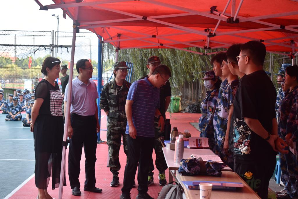下午,beat365亚洲体育在线官网党委书记宋西路、院长王崇革、党委副书记高静到军训场看望教官与同学们,看到同学们在烈日下整齐的步伐以及嘹亮的喊声,他们的脸上也露出了高兴与自豪。