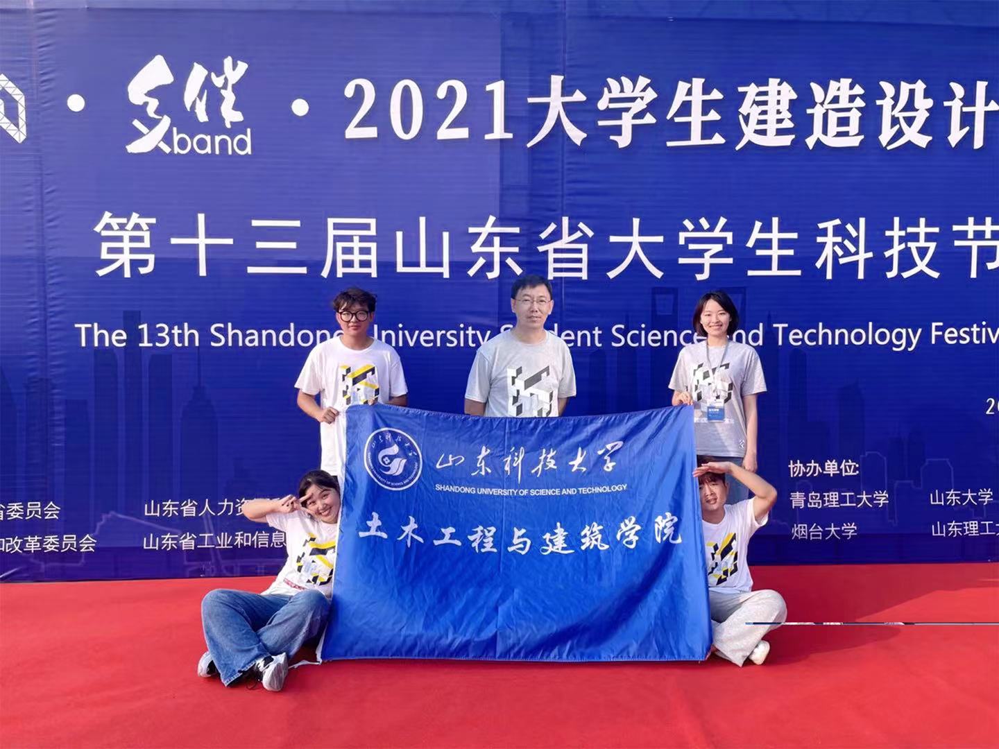 喜迎国庆暨建党100周年之际,9月28日至10月3日在淄博孝妇河畔举办第十三届山东省大学生科技节——“乡伴杯”2021大学生建造设计大赛,365官网建规系周同、王雅坤两位老师带领乔慧、李鸿宇、徐长澳三位同学参加搭建并荣获一等奖。这是山东省办赛时间最长、规格最高、最具实践性和行业影响力的大学生建筑类专业赛事。