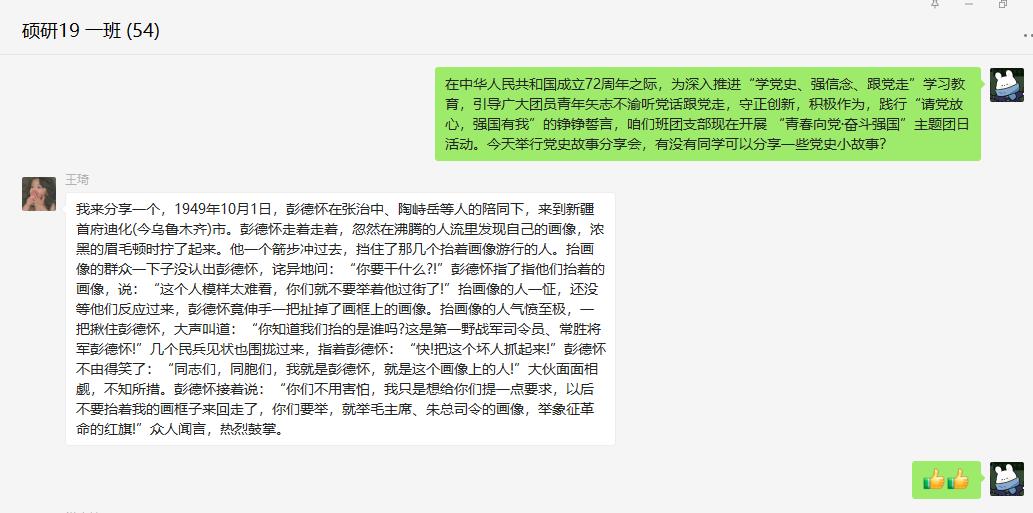 beat365亚洲体育在线官网各团支部高度重视、精心组织,通过观看“青年大学习”网上主题团课、线上会议、话题讨论等多种形式,开展集中学习。硕研2021级全体同学在土建楼219集中观看优秀党史影视作品《建军大业》,通过影片大家被这段革命先贤的过往所震撼,纷纷表示要立足当前,从我做起,要把今天的努力与实现中华民族伟大复兴的中国梦联系起来;硕研19-1班利用微信群开展党史故事分享接龙,从而加深了对党史的理解;本科21级新生利用晚自习时间通过团支书讲团课、手签名等方式增强学生的爱国热情。