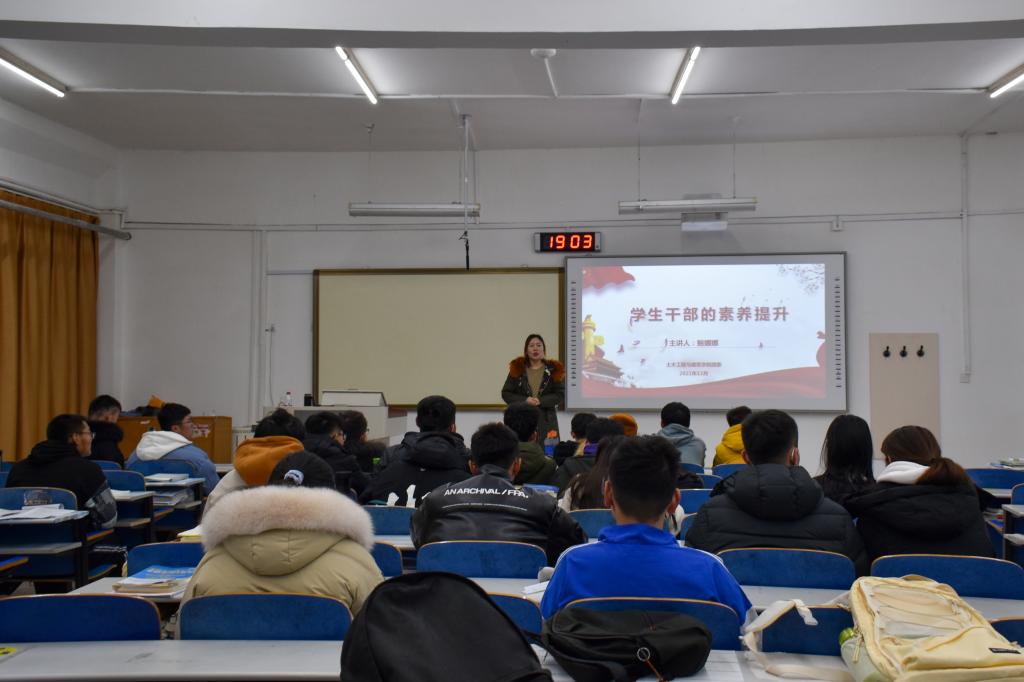 为认真贯彻落实习近平总书记关于青年工作的重要思想,进一步加强beat365亚洲体育在线官网基层团干部队伍建设,提升学生干部的工作水平,12月17日晚,beat365亚洲体育在线官网于S1-209教室举办“青马工程”基础班第四讲。本次课程由beat365亚洲体育在线官网学生工作办公室辅导员鲍娜娜主讲,“青马班”全体学员和学生会、研究生会干部参加会议。