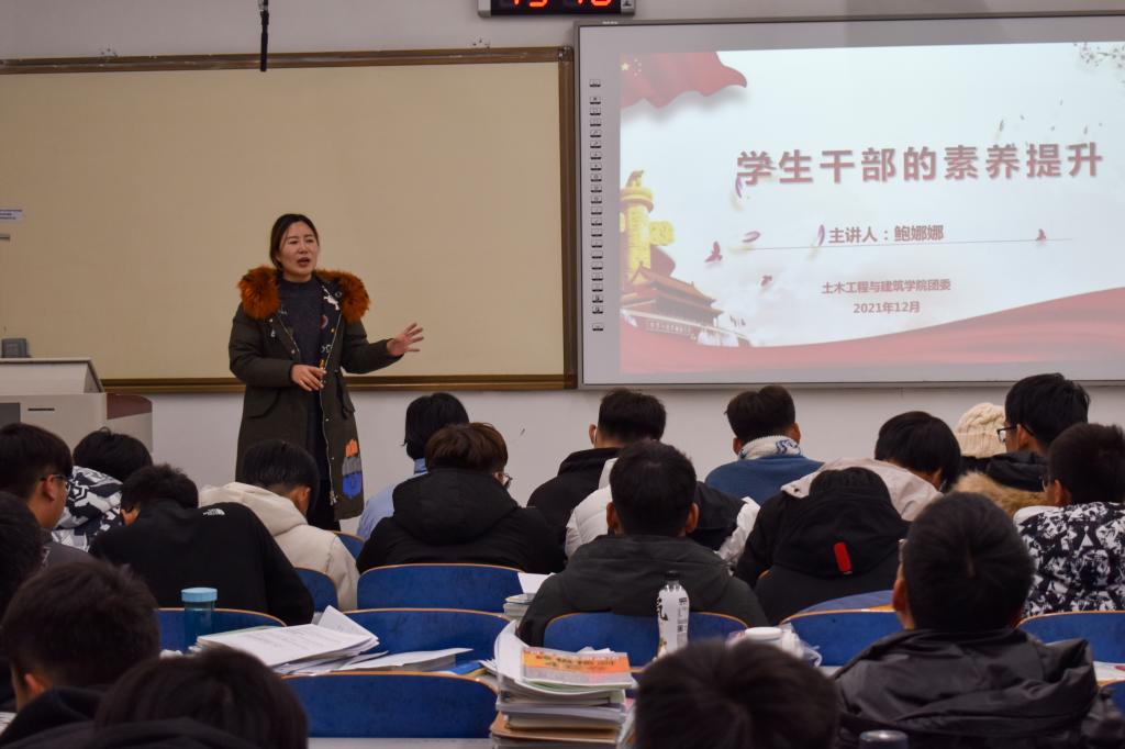 为进一步加强beat365亚洲体育在线官网基层团干部队伍建设,提升基层团干部的理论素养和工作水平,建立思想引领成效好、组织运行活力强、工作开展活力强、团员参与活力强、宣传展示活力强的基层团支部,3月13日,beat365亚洲体育在线官网在S1-205教室开展团支部委员培训班,beat365亚洲体育在线官网团委辅导员老师鲍娜娜应邀为2021级全体团支部委员进行培训。