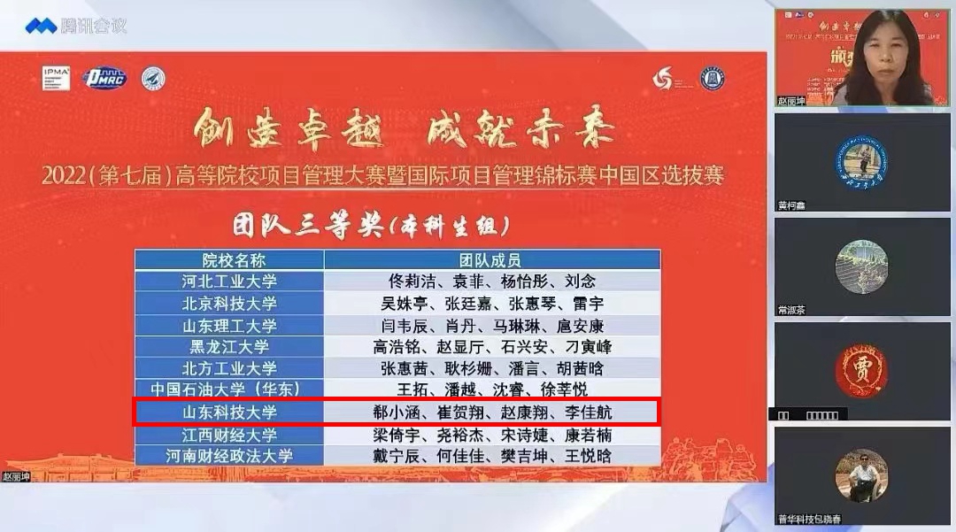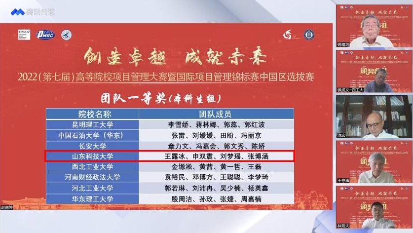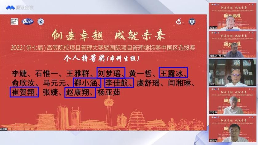 5月28日至29日,由中国优选法统筹法与经济数学研究会、国际项目管理协会(IPMA)主办,西北工业大学和中国青年项目管理者俱乐部(CYC)承办的2022(第七届)高等院校项目管理大赛暨国际项目管理锦标赛中国区选拔赛在西北工业大学成功举办,参赛院校包括清华大学、北京大学、北京航空航天大学、武汉大学、西安交通大学等50所高校,100多个团队、500余名师生。