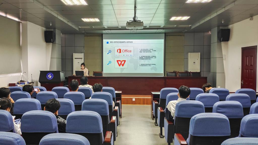 培训伊始,姜旻妤从整体介绍,对Word、Excel以及PPT三个软件进行本质和功能上的区分。然后列举反面案例对常见的软件使用问题进行归类分析,同时对所讲内容进行现场操作,以达到学以致用巩固所学技能的效果。随后姜旻妤围绕显示设置、整体基础设置以及快捷键等一系列基础操作对三大软件作出详细讲解,将自己的心得体会传授给在座学生。最后场下学生提出疑问,姜旻妤认真倾听并逐一解答,整个过程互动氛围良好。