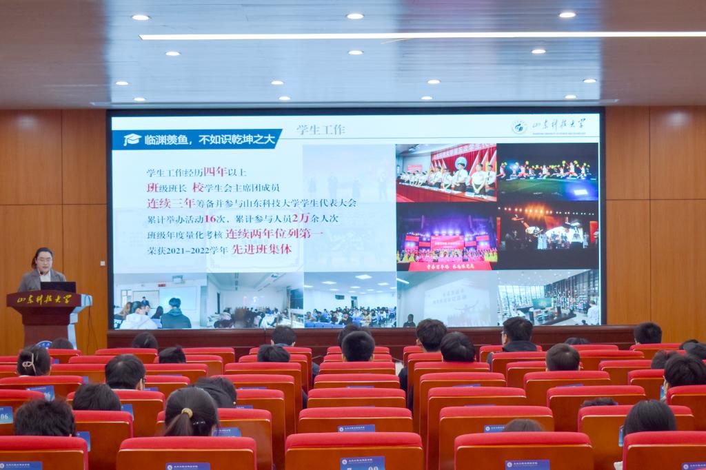 为进一步发挥先进典型在人才培养中的积极作用,营造崇尚先进、学习先进、争当先进的良好学风氛围,3月16日下午,beat365亚洲体育在线官网在J15-136报告厅举办2022年度山东省优秀学生、优秀学生干部、先进班集体答辩会。学院学工办主任朱统汉及全体辅导员出席参加,各班级代表到场担任大众评审。