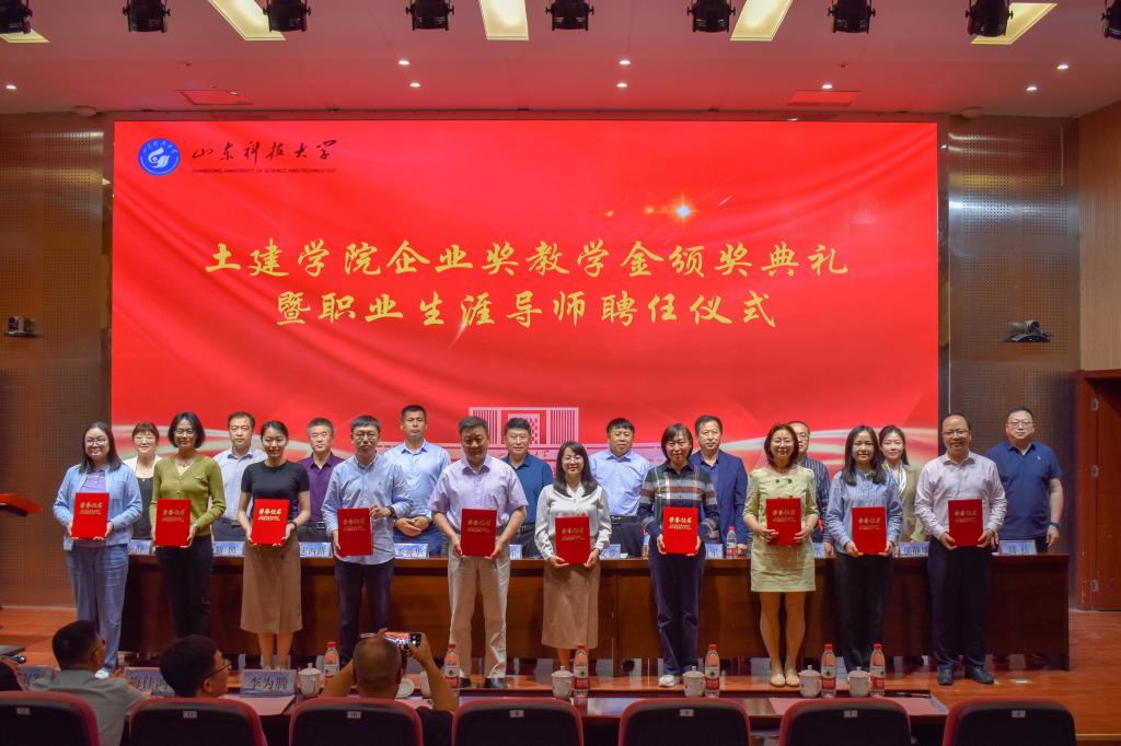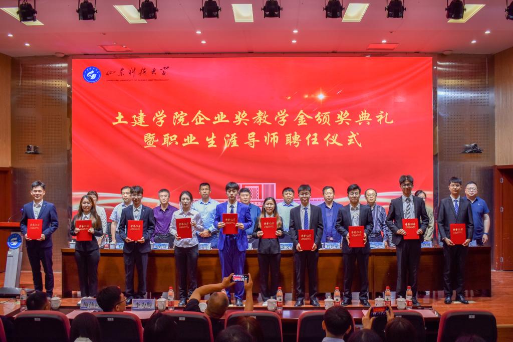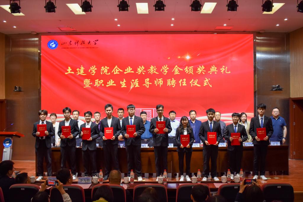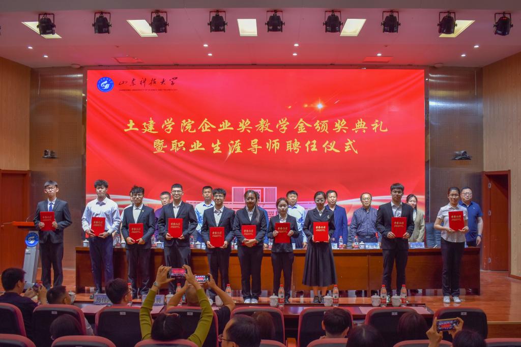 5月24日,beat365亚洲体育在线官网企业奖教学金颁奖典礼暨职业生涯导师聘任仪式在J9-144报告厅举行。烟台平安信息工程职业技能培训学校校长宋文章,日照市政集团常务副总经理娄善华、爆破公司经理焦淑君,山东省路桥集团青岛分公司党总支书记、副总经理曹建军,党总支委员、总工程师梅佳鸿,学校合作发展处处长王晓东,学生工作处副处长靳凯,校团委副书记侯静娴,研究生院副院长刘松,及beat365亚洲体育在线官网师生代表参加了本次颁奖典礼。典礼由beat365亚洲体育在线官网党委副书记高静主持。