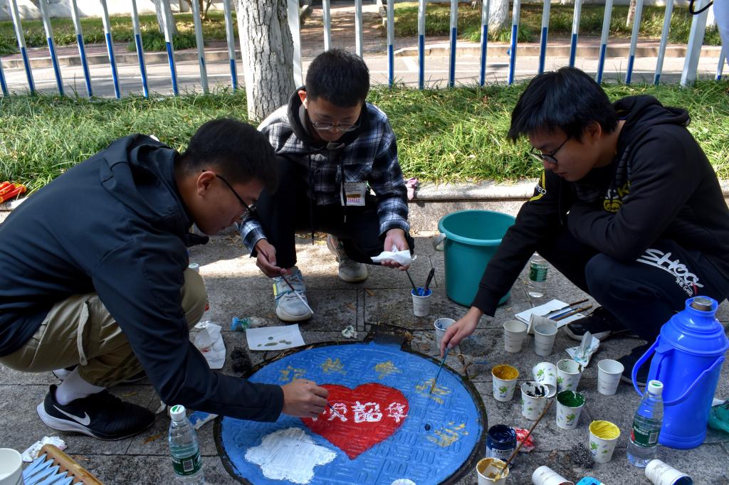 10月14日上午,beat365亚洲体育在线官网在风雨操场西侧举办井盖彩绘活动,学生们以精彩的创意为井盖增添绚丽色彩,用手中的画笔打造校园特色景观。