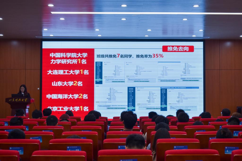 答辩会上,各班负责人通过PPT全面总结本班级的基本情况,从班级建设、学风建设、党团建设、科技创新、文化活动、社会实践、志愿服务等角度充分展现了班级取得的成绩及精神风貌。参评班级特点突出,作风优良。他们有的成立帮扶小组,互相学习,互相进步;有的注重打造班级特色,设计班徽、班训及班级口号,有效提升学生对班级的归属感和参与感;有的制定上课考勤、集体晚自习、定期学习测验等制度,确保班级工作的科学化、高效化进行。