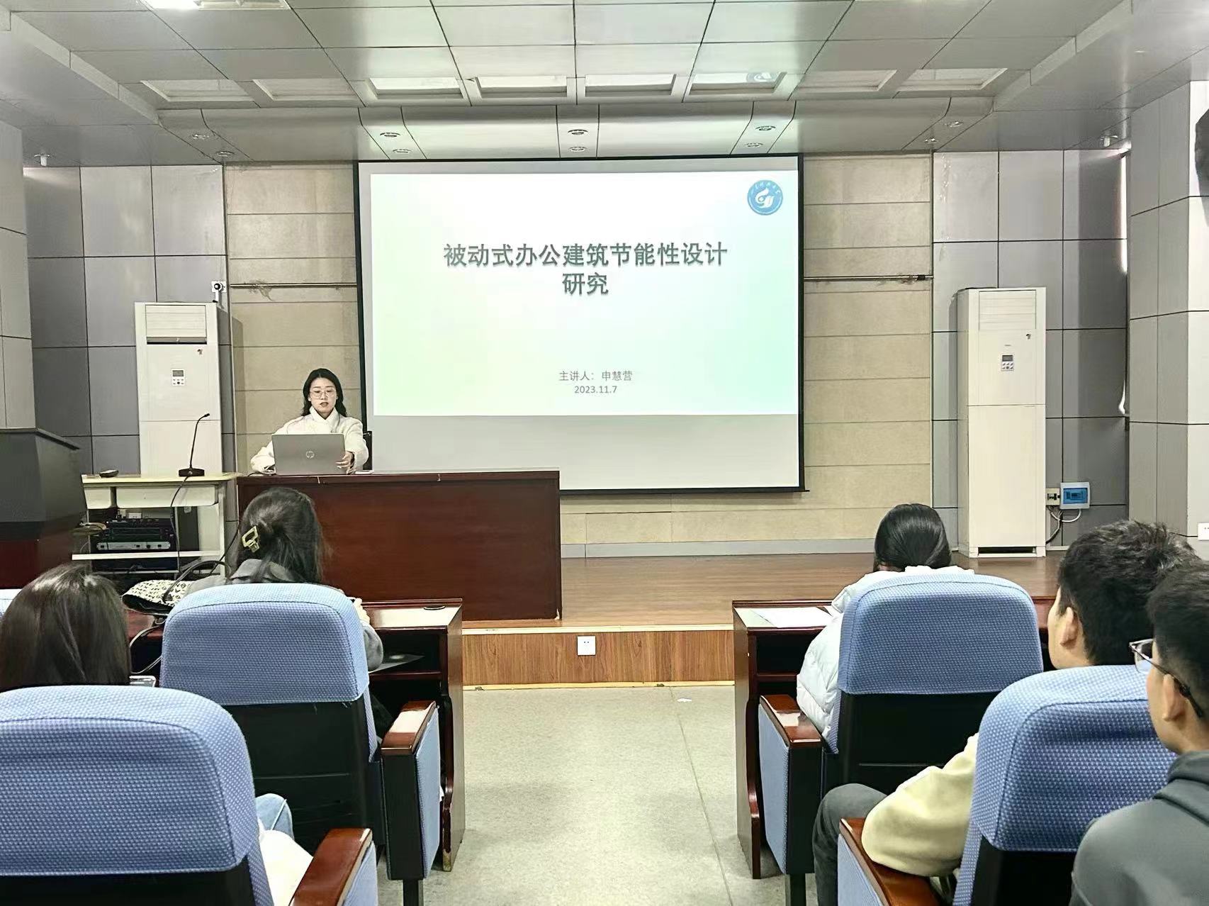 11月7日,由beat365亚洲体育在线官网校研究生会学术科技部主办,beat365亚洲体育在线官网研究生会承办的第一一七一期研究生讲坛在J15-219教室举办。本期讲座由beat365亚洲体育在线官网硕研2022级2班申慧营担任主讲,主题为“被动式办公建筑节能设计研究”。