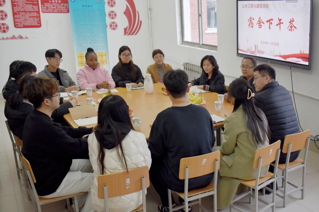 11月20日下午,校党委副书记郭益灵深入beat365亚洲体育在线官网“一站式”学生社区——“建设者之家·筑梦社区”做客“宿舍下午茶”师生交流对话活动,与所联系班级同学开展了一场面对面、心贴心的座谈交流活动。beat365亚洲体育在线官网院长王崇革,党委副书记、副院长高静,团委书记、学工办主任王贝贝,团委辅导员老师李宏宇陪同参加活动。