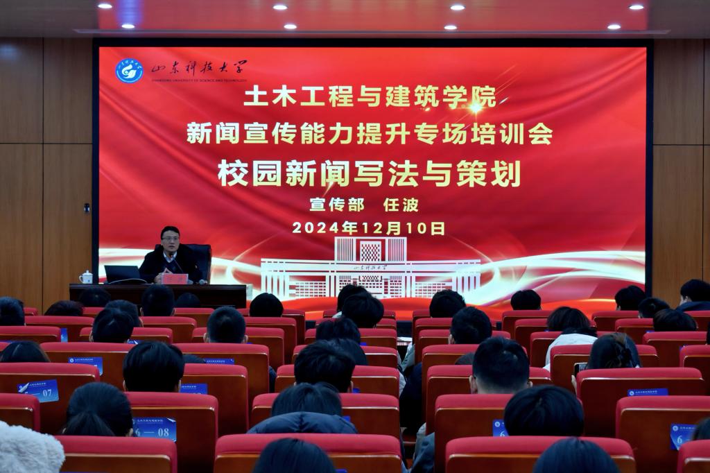 为切实提高365官网新闻宣传工作队伍的业务能力,不断提升学院新闻宣传工作的质量和水平,beat365亚洲体育在线官网于12月10日在J15-136报告厅举办新闻宣传能力提升专场培训会。本次培训会邀请到校党委宣传部任波老师主讲,学院新闻宣传中心成员及各班级宣传委员参加此次培训会,培训会由学生工作办公室主任、团委书记王贝贝主持。